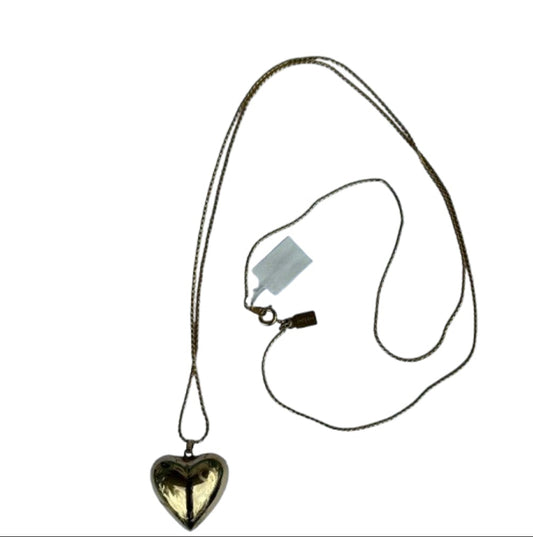 Bergere Vintage Etched Puffed Gold Heart Necklace Gold Filled | Preowned