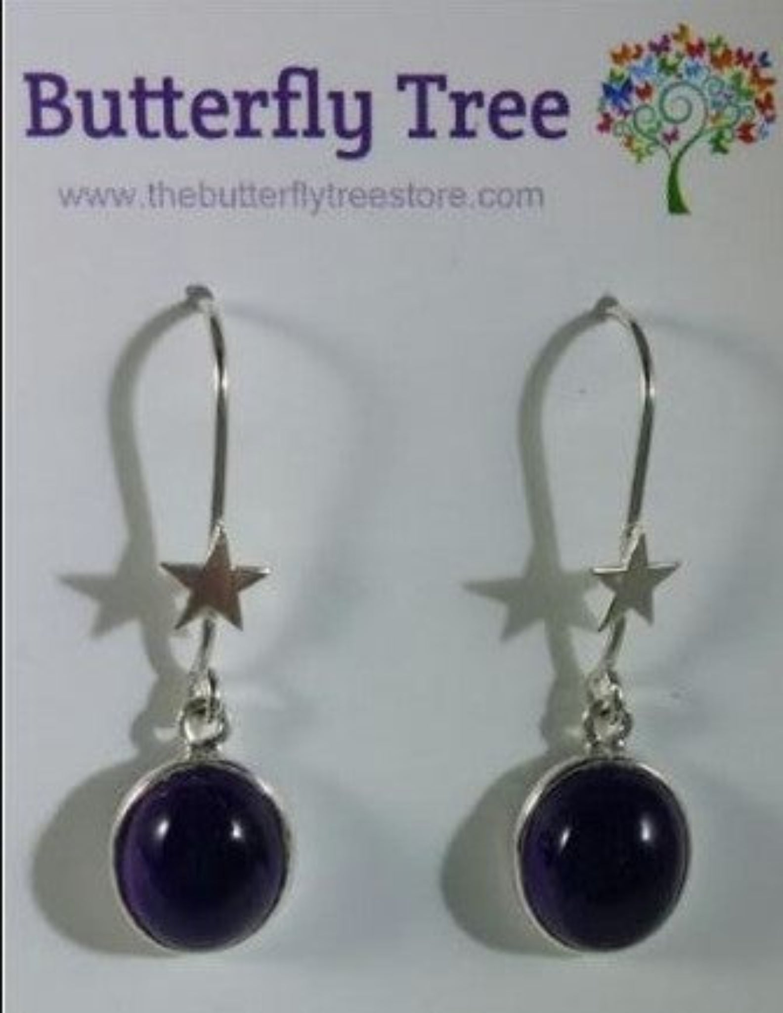 Sterling Silver Amethyst Round Earrings with Star